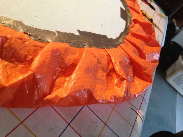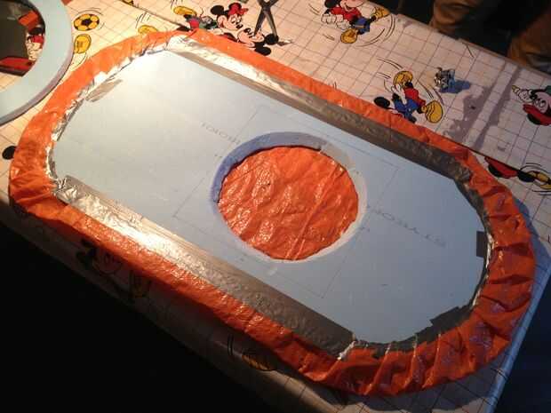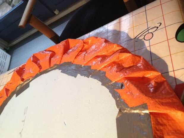 -Una vez que tengas listo el falda, colocar la placa base en él. Doblar los bordes de la falda y cinta en el tablero. Puede utilizar cinta adhesiva para ello.