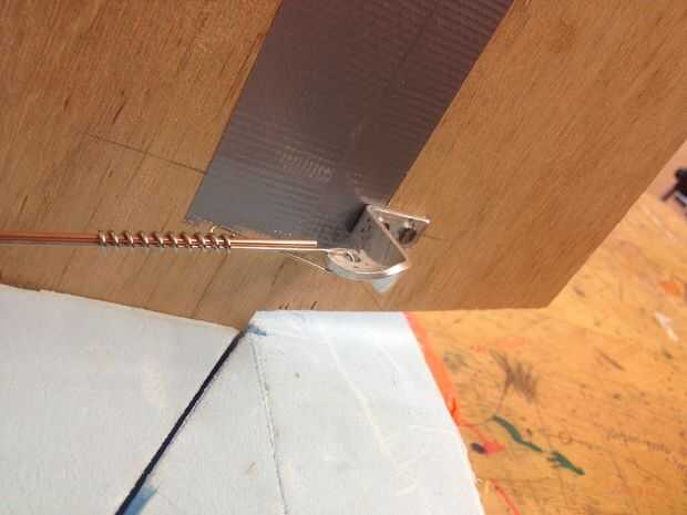 -Derecho detrás de este motor del empujador va poniendo el timón, como ves. Uso triplex o madera contrachapada para el timón. Una parte del timón se encuentra en lo 2cm de espuma de poliestireno, la otra parte está colgando sobre esta. Sólo tiene que conectar las dos partes con cinta adhesiva. Mantener un pequeño espacio entre ellos para que sea movible.