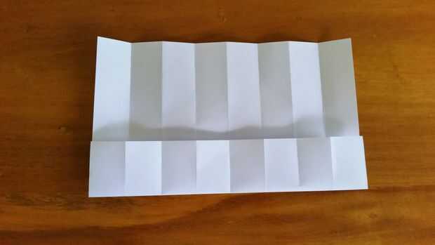 Luego doble el nuevo borde inferior hacia arriba otra vez, también al centro de la línea de doblez.