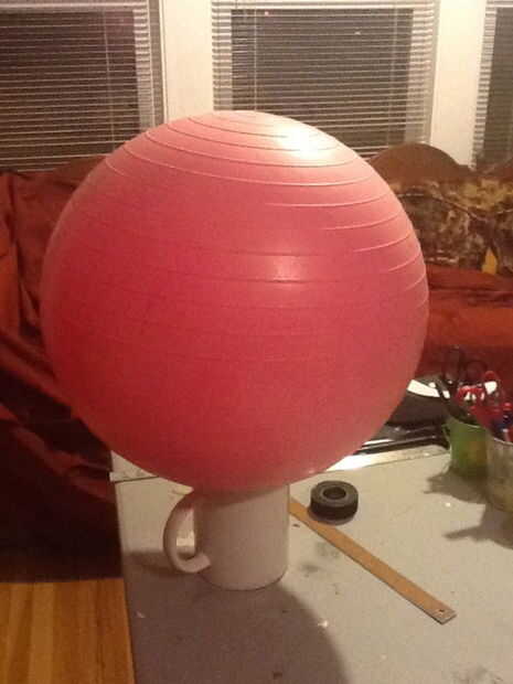 Asegúrese de que la lengüeta de liberación está en la parte inferior para que eventualmente pueda tomar, desinflar el balón y retirarlo con cuidado. No hay necesidad de cubrir la parte inferior, usted necesita quitar la ficha, y la cabeza irá. hice sobre 5-6 capas... (pero si alguna vez hago esto otra vez, voy a utilizar más capas de apoyo)