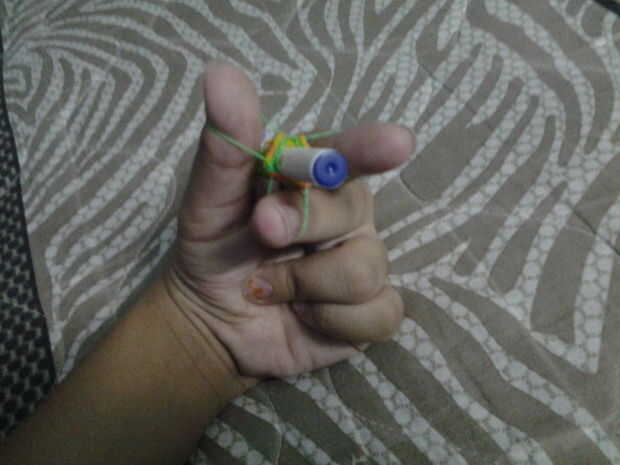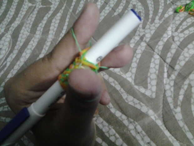 repetirlo pero asegúrese de que usted está colocando la banda donde la pluma todavía está en el centro, significa que al agregar la banda no la pluma de lado y luego estirarlo, hay que tener la banda en la parte superior la pluma