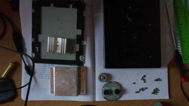 Está hecha de piezas recicladas de un antiguo CD-ROM, un motor de impresora y cosas de un viejo tablero de pantalla CRT (como resistencia).
