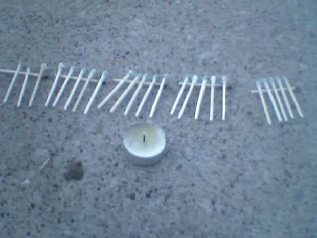 Ahora permite tomar a los fósforos y velas fuera. Frist salga un fósforo y enciende la vela y espere hasta que casi la totalidad de la cera se haya derretido. Mientras la cera se derretía, quemar cinco o así que coincide con y apartarlas. OK una vez que la cera se haya derretido, la vela y sumerja cada una en él y que se sequen en los partidos viejos quemados enfriar. Asegúrese de que la cabeza está cubierta completamente de cera.