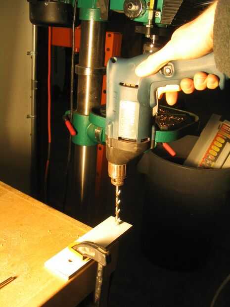 Alinee y pinza el material en su lugar. Las abrazaderas son siempre una buena idea. Como el taladro perfora a través el lado opuesto del material, puede agarrar y hacer girar la pieza de trabajo. Si están sujetando el material a mano, pueden resultar en lesiones. Tenga especial cuidado de esto cuando se utiliza un taladro de mano. Si la broca se agarra, toda la herramienta puede arrancada de tus manos.