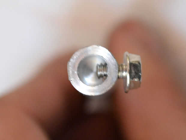 Montara la extensión en un tornillo de banco y con la ayuda de un archivo que hice la superficie plana por lo que el nuevo mando puede resbalar en apretado bastante. Finalmente usé un taladro de mano para hacer un agujero perpendicular a la del final de la extensión que va de lado a lado. Para elegir el tamaño de broca de taladro utilicé una tabla de hilo en combinación con el golpecito del hilo de rosca y el tornillo que voy a utiliza para fijar la extensión a la varilla del quemador. Entonces utilicé el grifo de rosca para hacer el hilo en el agujero, y estás acabado. Hecho el agujero de lado a lado porque he tenido algunas malas experiencias donde el grifo de golpe al final del agujero y se rompe.