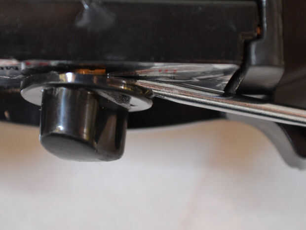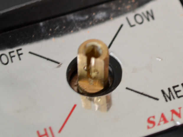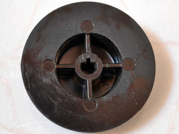 Luego usé un destornillador plano para quitar la perilla de la hornilla. Yo sólo capas entre la perilla y la pared del quemador y la corredera a perilla. Como se puede ver en las fotos, la forma de la barra es un círculo con un corte recto. Va del mismo modo en el botón nuevo. Voy intentar mi mejor para medir el diámetro del círculo y la distancia entre la superficie plana y el extremo del círculo con un pie de rey.