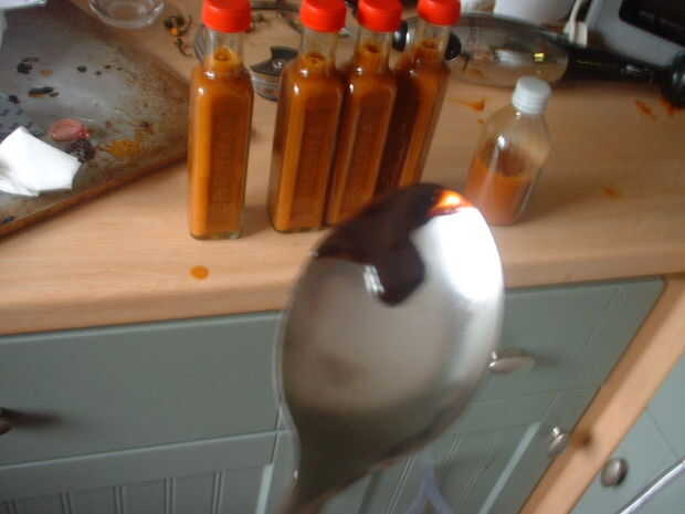 Uno podría desear agregar un poco de color con caramelo casero, y aguardiente casero.