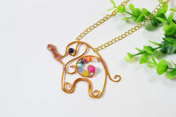 Paso 5: Mostrar la pieza final del collar pendiente del elefante envuelta alambre oro Linda!