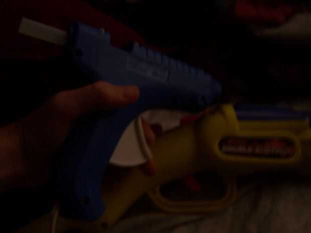 Ahora, para obtener de su arma, usted puede o bien pegamento caliente lo en como se muestra en la imagen, o cinta en...