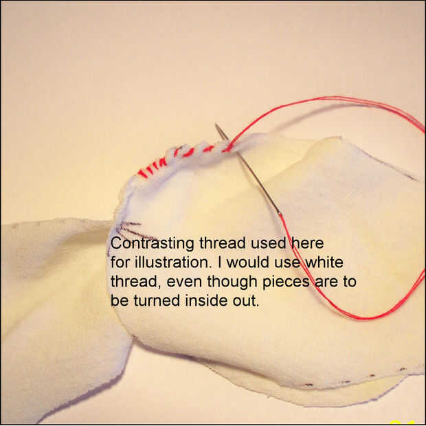 Utilizando el béisbol real como mi modelo, vi cómo las dos piezas de la cubierta fueron orientadas uno al otro y junte mis piezas de dos paño de una manera similar. Luego cosí las dos piezas juntas con una puntada que fue alrededor de ambas piezas y a través de cada lado que hacen una puntada muy fuerte. Se deja un agujero de una pulgada para que el relleno se puede insertar en la bola. Después de completa este paso coser, vuelva pedazos.