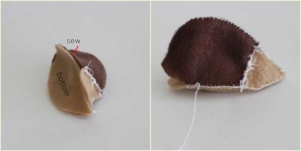 La pieza inferior/vientre del gancho agarrador y coser a los lados del puerco espín. Asegúrese de dejar un poco de la parte posterior abierta.