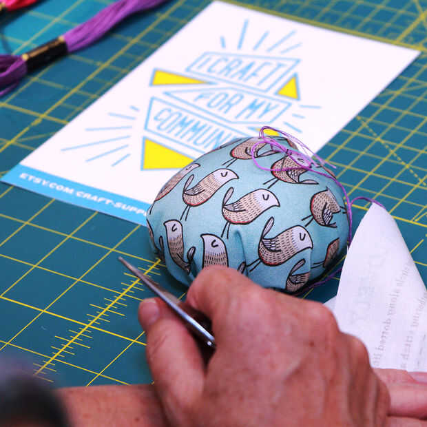 Círculo de 7 a 8 pulgadas de tela (puede utilizar un plato de ensalada pequeña para trazar a la tela si no está seguro del tamaño) o Spoonflower tiene un gran juego aquí por Anda impresa. Utilizamos algodón Kona para nuestros en la fiesta de la artesanía de Etsy/Spoonflower.