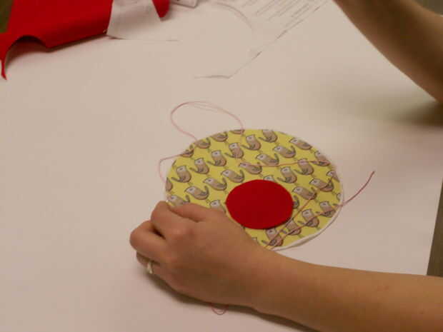 Corte un pequeño pedazo de fieltro (3-4 pulgadas) para la parte inferior. Puede utilizar un vaso como la plantilla para ello.