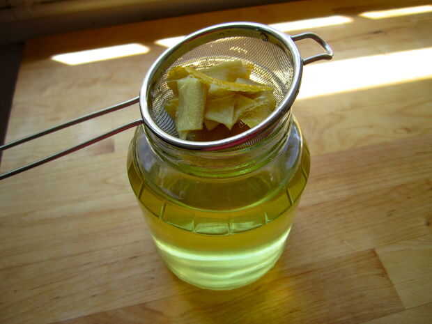 A veces a colar en la jarra, a veces te cuele en una taza grande y verter en la jarra. Todo depende de en cuánto almíbar tienes, cómo "verter" su pan es y sucio cómo te sientes. Si usted tiene un embudo grande que trabaja demasiado! Sólo tengo una pequeñita por lo que no fue ayuda y sólo se sentaron alrededor y había juzgado que yo ya he hecho un lío.