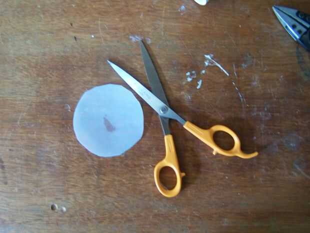 Cortar un círculo de la jarra de leche (corte bonito y grande la primera vez... se puede siempre cortar extra apagado más adelante).