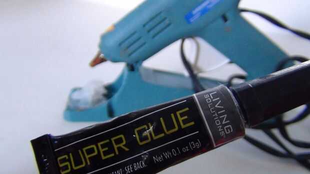 Usted puede utilizar pegamento caliente o pegamento, ambos funcionan muy bien.