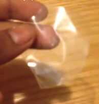 Luego fije el círculo desde el interior de la Copa a la parte inferior. El lado adhesivo de la cinta debe hacer frente el fondo de la taza.