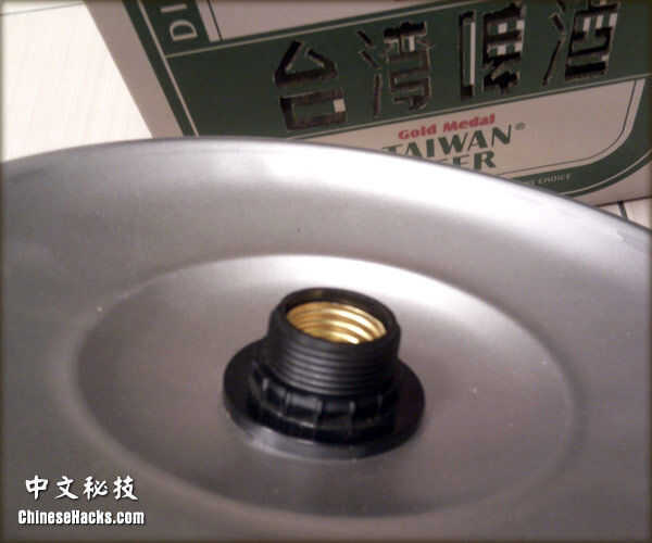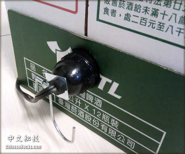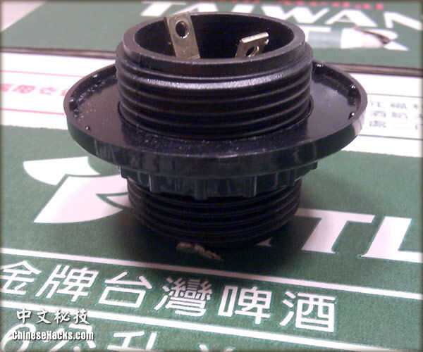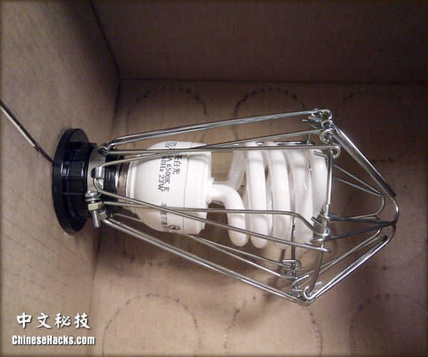 La luz entonces fue cabida y el el extremo del cable fue atornillado sobre para mantener en su lugar. Para una medida de seguridad, también puse la jaula del bulbo nuevo que venía con la lámpara, esperemos que esto detendrá el bulbo tocando el cartón y posiblemente causando un incendio.