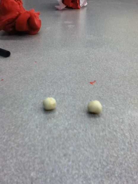 2. después de hacer paso 1 Tome dos bolitas negras y colóquelos en el centro de la arcilla blanca como la foto 6.