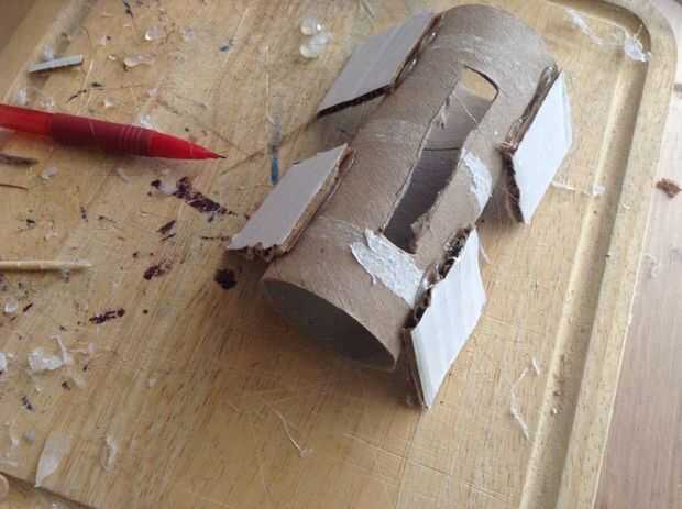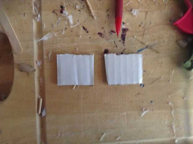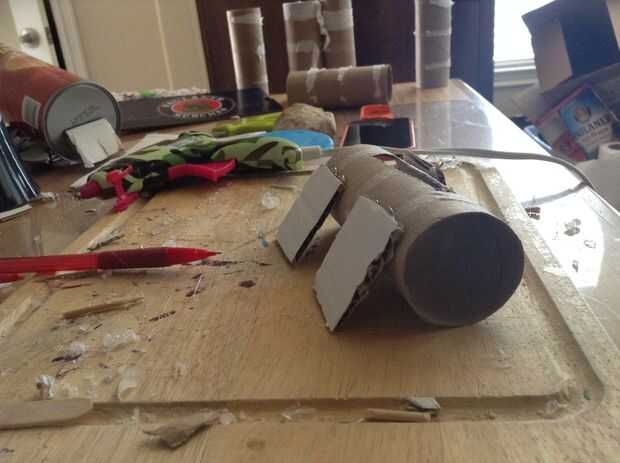 Cortar 4 cuadrados de cartón, cada uno ser lo suficientemente larga para tocar el suelo. Yo entonces caliente había pegado en el tubo.