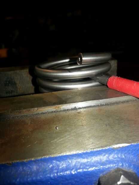 Después de hacer esto que me di cuenta que sólo se podía cortan hacia abajo la media de todos los bucles que recortar los 2 anillos finales, que había dejado una pieza aproximadamente de 20mm.