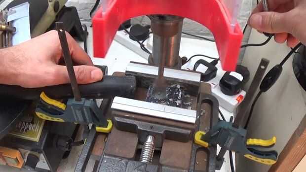 Usando una broca ligeramente más pequeño que el tamaño necesario, taladre un agujero en el taladro.