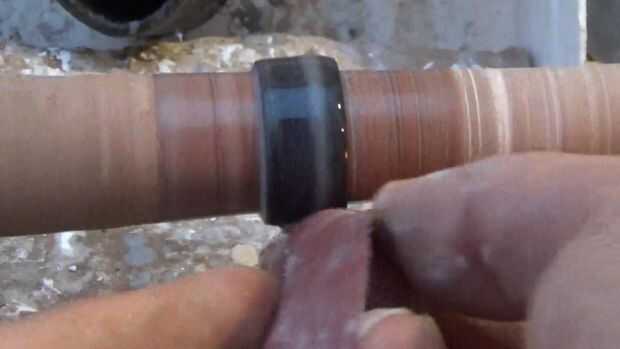 Mojado de la arena el anillo como antes de trabajar a través de grano progresivamente más fino. Crear una superficie brillante lisa sin marcas de herramientas.