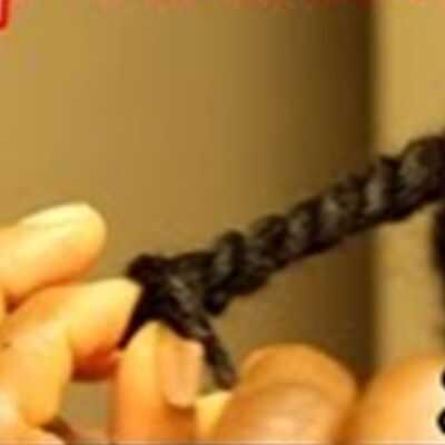 Enrollar los extremos alrededor del lazo, como si haciendo un nudo bantú