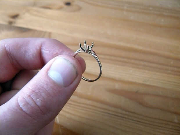 'Ingredientes' simples y simples equipos para obtener un anillo de buen aspecto.Tuve una mentira brillante en una cajita en mi escritorio y a mi me encantan los anillos.Decidí poner esa joyita en un anillo y darle a mi novia.Pero yo no soy un joyero