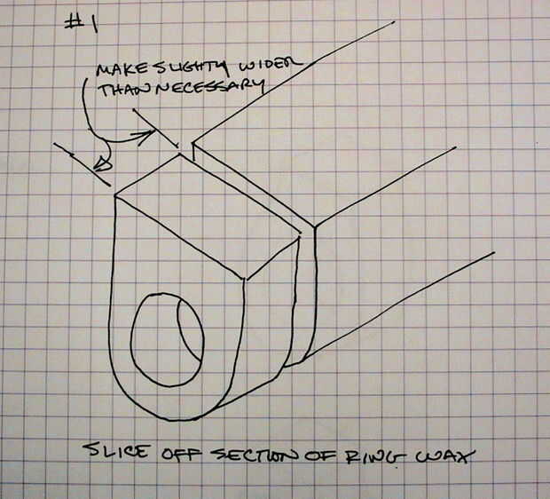 1) para tallar la cera anillo primera rodaja una sección de la cera del anillo que es un poco más de lo que será el acabado del anillo