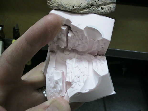 La hoja curva hace que corte el molde abierto más fácil porque usted quiere hacer pequeñas arriba y abajo de las curvas como se corta. Estos recortes le ayudarán a la cerradura de las mitades del molde juntos después de que se ha eliminado el modelo de cera.