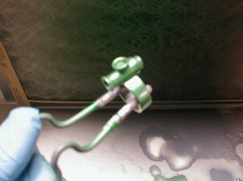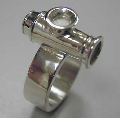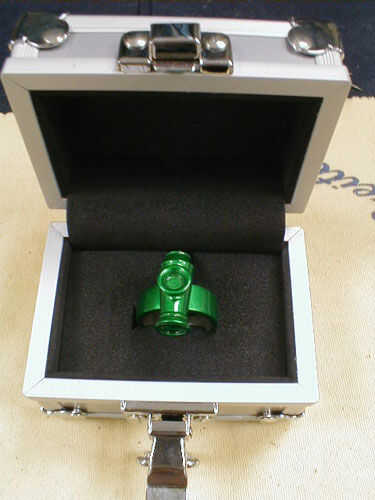 Primero frote el anillo todo con una gruesa almohadilla de Scotchbrite. Ahora rocía el anillo con una cartilla y siga con una capa de base plata. Después de la capa de base plata ha secado spray el anillo con varias capas de color verde translúcido. Luego dar el anillo de una capa transparente final para protegerlo.