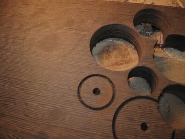Guesstimate lo que el diámetro externo del anillo debe, dependiendo del tamaño de su dedo y elegir un serrucho por consiguiente. Utilizando una prensa del taladro, perfore parte a través de la pieza de madera, asegurándose de que la pieza de madera se perfora se mantiene intacta, con la Junta.