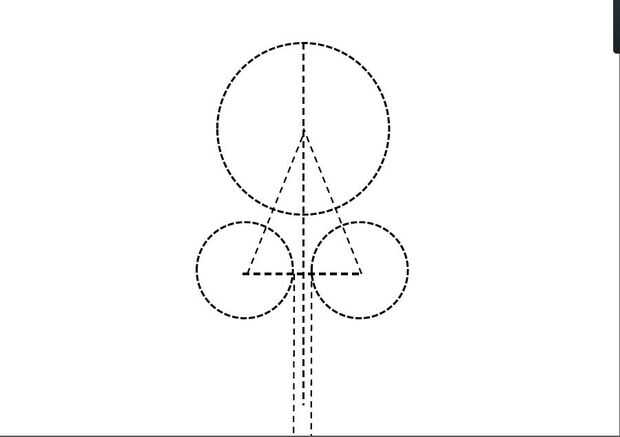 Necesita tres círculos que serán los ejes de la forma de su sello. Te círculo superior tiene que ser más grande para un top amplio agradable del signet, no quieres que se vea como un hielo-cono al revés;) Puede ver cómo las líneas para crear la forma que necesita.