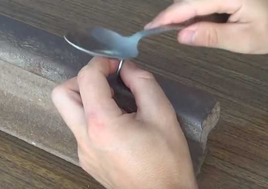 -Golpear en el borde con la cuchara de envolver la moneda alrededor sin una parada.