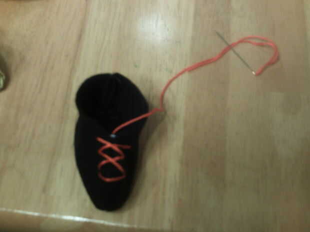 Coser los lados traseros juntos, luego en la parte superior del dedo del pie, hasta el fondo.