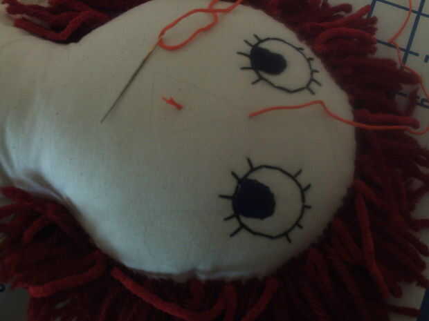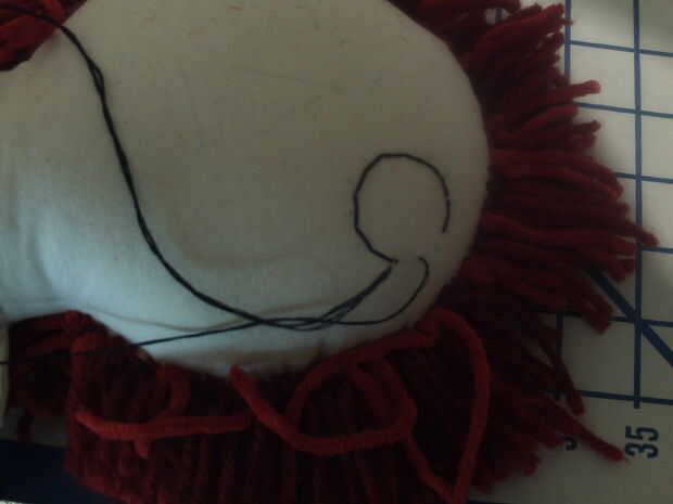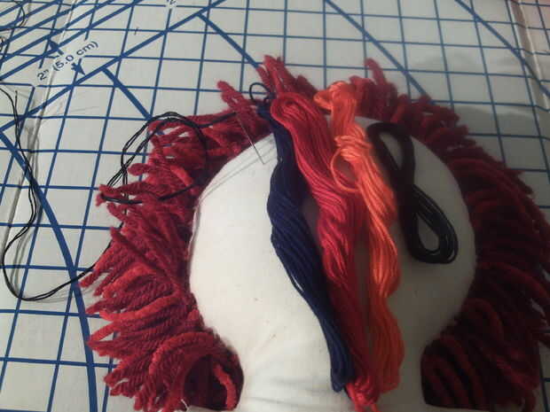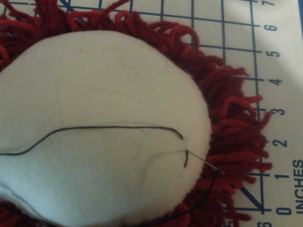 Escondió el nudo del hilo en el pelo y tiró el hilo a través de la cara. Até el extremo en el pelo cuando estaba terminado.