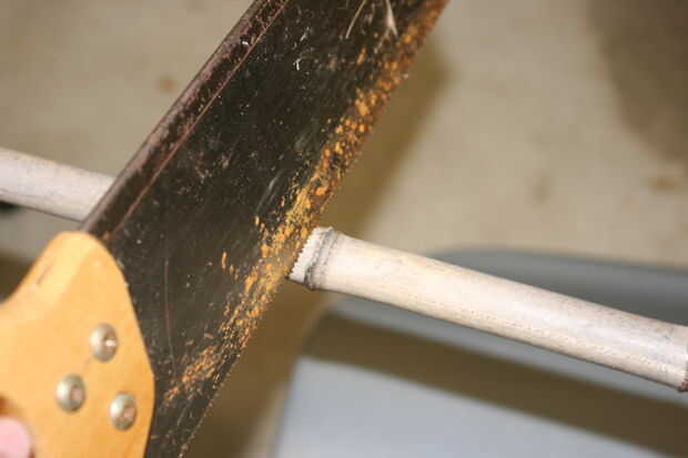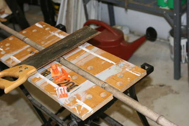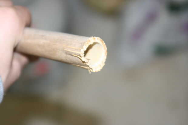 Pinza encima de la varilla de bambú y conseguir su sierra mano!