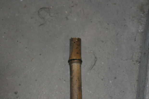 Ahora deslice la cabeza e inserte el tornillo. El tornillo debe ser ajustado dentro del bambú.