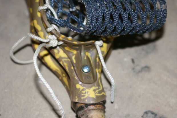 Si el agujero no es lo suficientemente grande, o no se compara en tamaño con el agujero en la cabeza de lacrosse, asegúrese de extender el agujero un poco más. Acabo de ir en unos círculos con la herramienta Dremel hasta que el agujero más grande.