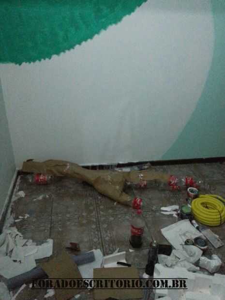 Me puso la estructura en el suelo y comenzó a cubrirla. Utiliza la cinta scotch para conectar las hojas una vez que terminan.