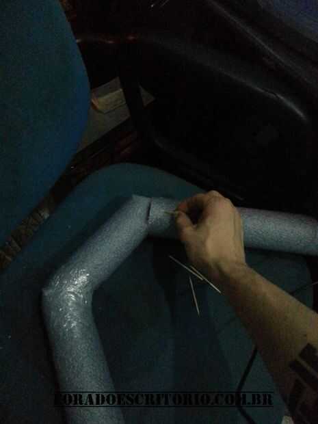 Para hacer los brazos usé los tallarines de la piscina, tootchpicks y alambre, para darle algunas reigidity. Cuando sea necesario también usé el pegamento de contacto y la cinta adhesiva para unir dos trozos de los tallarines de la piscina, o para pegar a la pared.