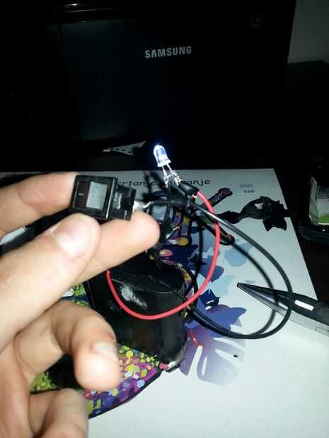 ahora soldar el cable positivo a la batería y hacer lo mismo con el cable negativo y luego lo mismo en la bombilla LED y también puede Agregar un interruptor como yo si te gusta pero que es opcional:).