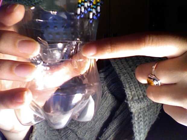 3. ser muy cuidado de no cortarse, comenzar a cortar una incisión en el lado de la base.
