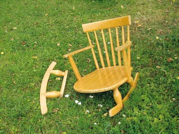 Aquí hay cosas que usted necesitará para este proyecto: una mecedora fuertemente construida con armas pesadas cuerdas, anillos de acero, pesados ganchos, tornillos, lija, pinturas al aire libre, cepillos, una sierra, un tablero grueso de madera y un taladro.