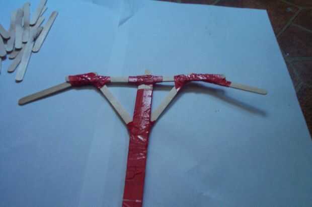 Tomar dos palos popsickle y cinta adhesiva en una manera curvada por lo que parece en la foto.