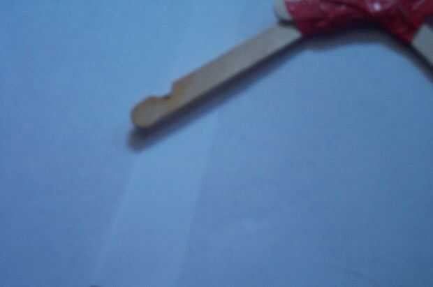 Al final de cada palillo que pegar con cinta adhesiva, corte knoches para que la goma puede colgarse de algo.
