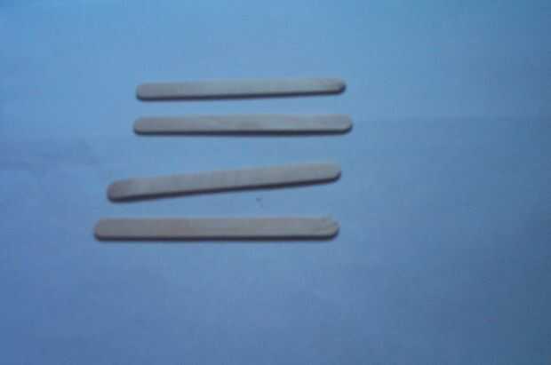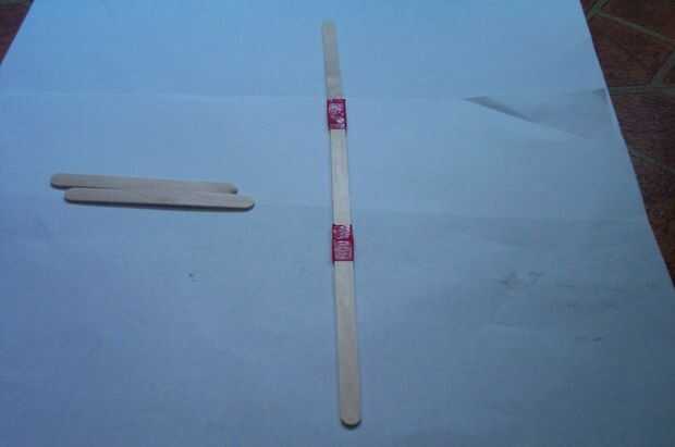 Llevar cinco palos popsickle y tres para hacer el cuerpo de la flecha. Tome las otras dos y con cinta adhesiva debajo de apoyo.