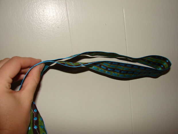 Empezar haciendo un lazo con la cinta. Desde la cola de la cinta para el lazo debe ser 7-8 pulgadas.