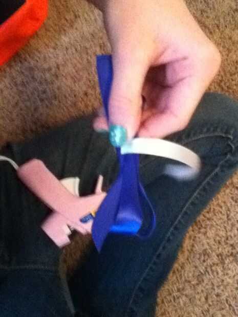 esto es una pulsera cool que obtendrá un montón de comentarios y siento mucho no tengo muchas fotosPaso 1: Hacer una tira de cinta adhesivaHacer una cinta tira toma una tira y otra tira en la parte superiorPaso 2: Hacer el arcoLocalizar el centro de